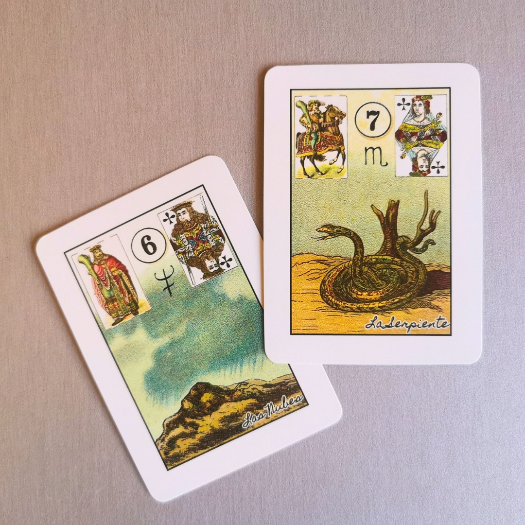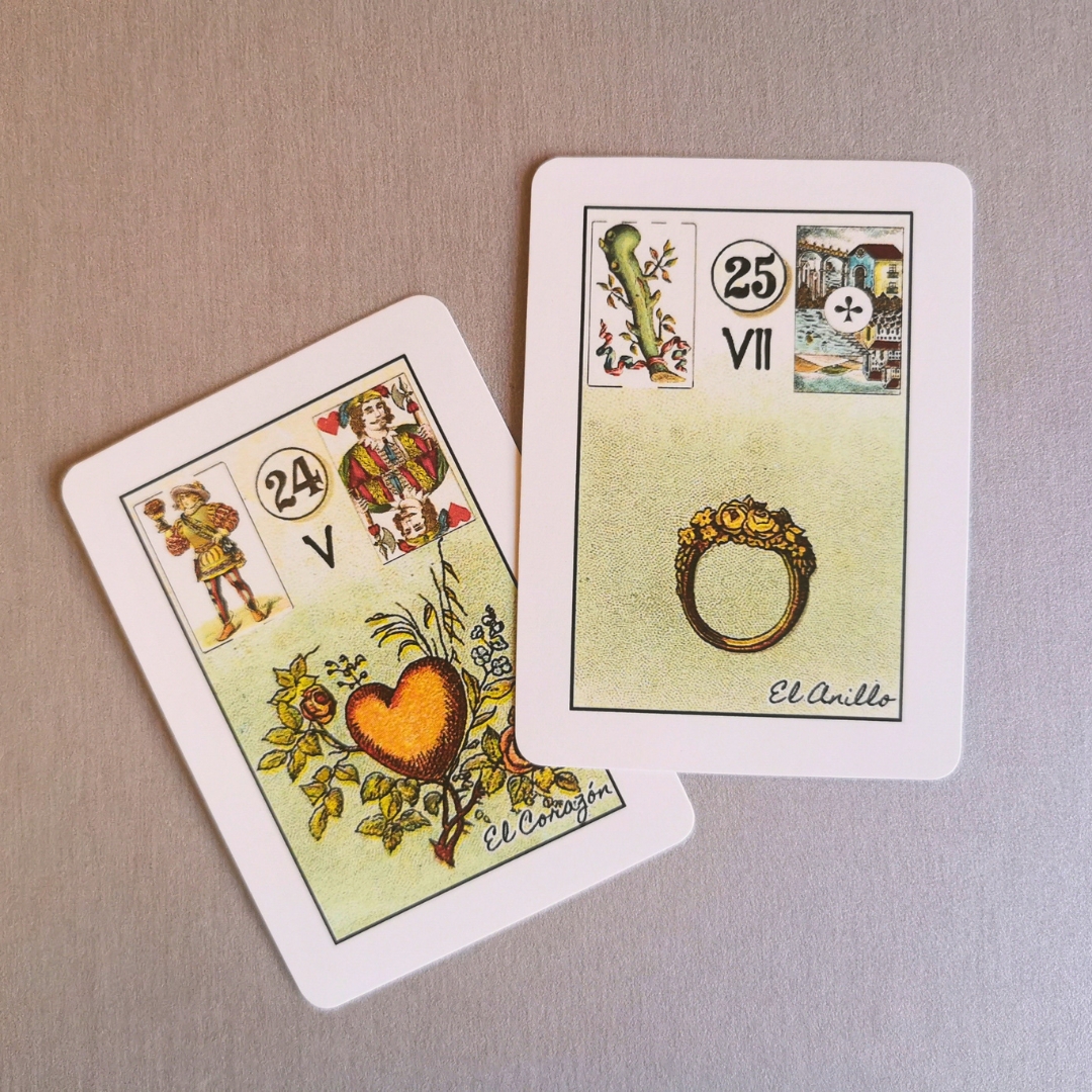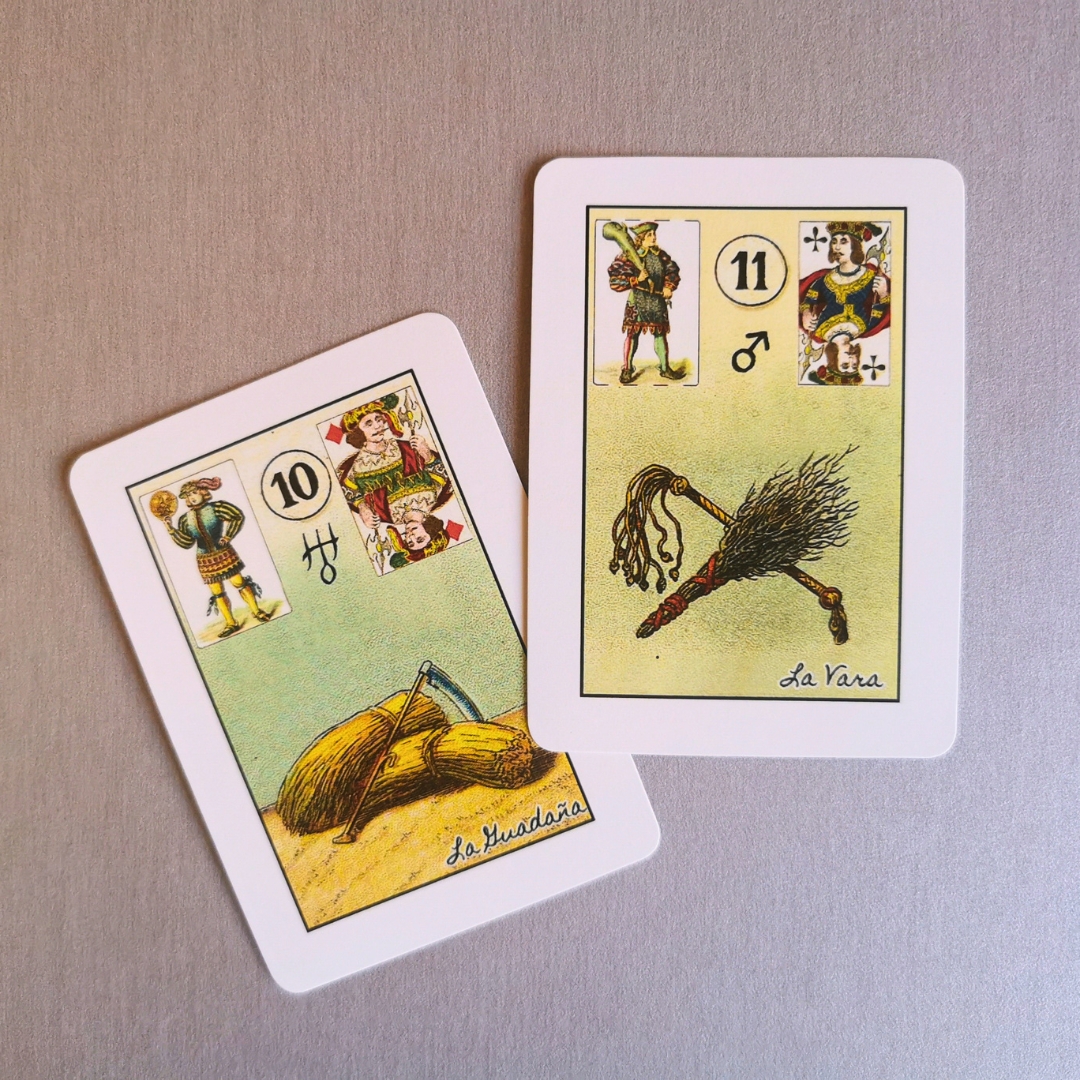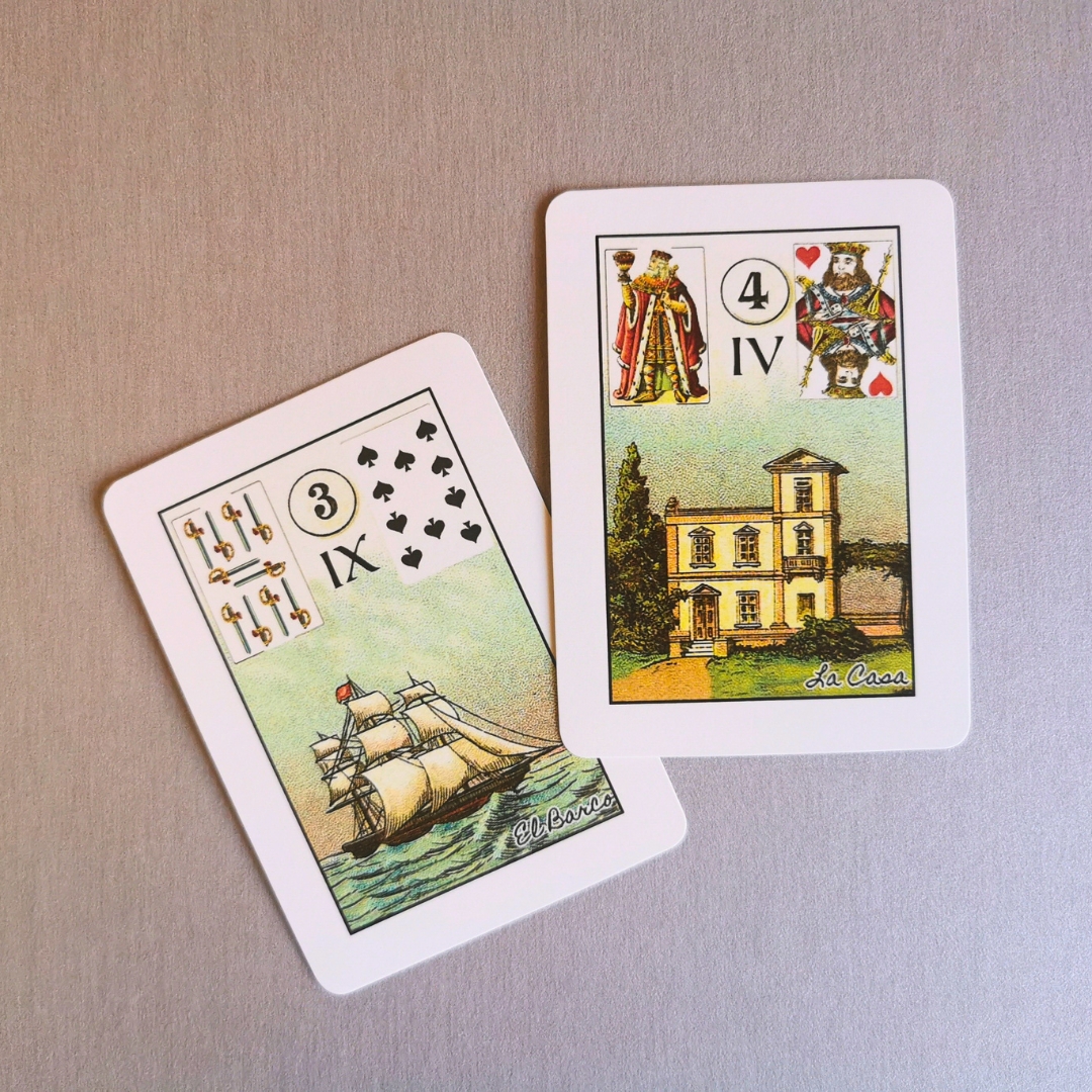 Baralho Cigano com símbolos astrológicos O Baralho Petit Lenormand com cartas explicativas em espanhol.