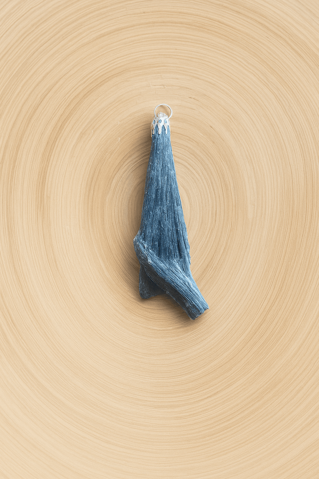 Este elegante pendente de Cianita Negra, conhecido também como “Escova de Bruxa” é uma peça única e poderosa para quem procura proteção energética.