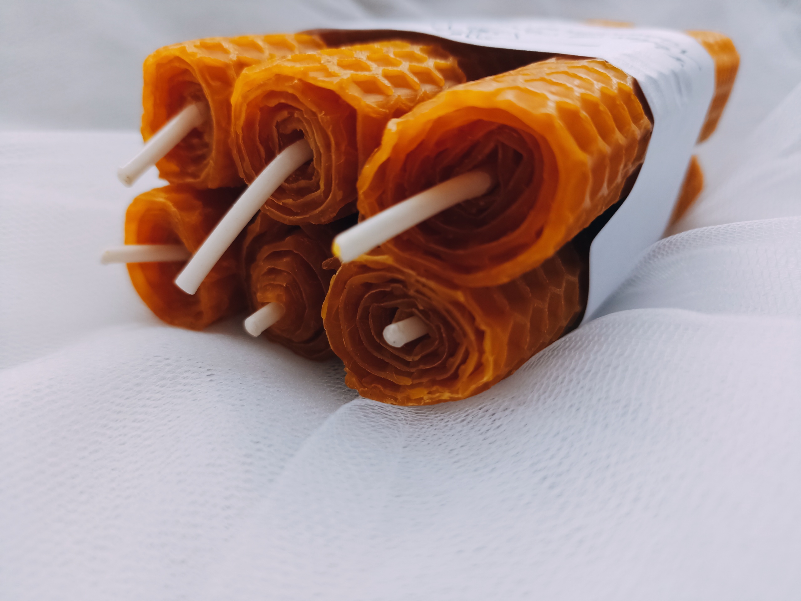 Pack de 6 unidades de velas artesanais de cera de abelha.